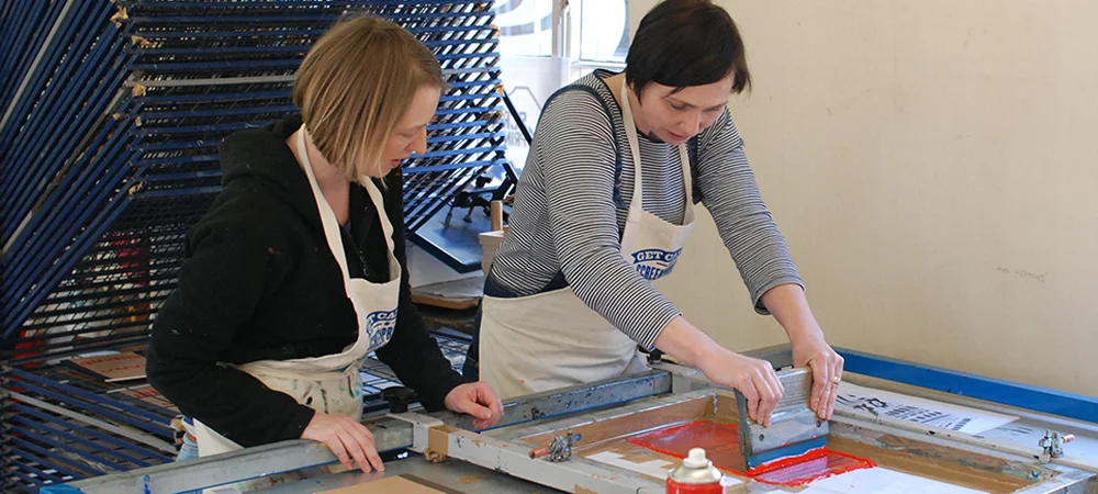 A one day screen print workshop run by Get Casual founder, Hayley Walters. You will be taken through every aspect of the screen print process from exposing screens to printing products with your own design to take home. Included in the price (£85 per person) are ten blank T-shirts, bags or tea towels to print on and a delicious home made lunch.